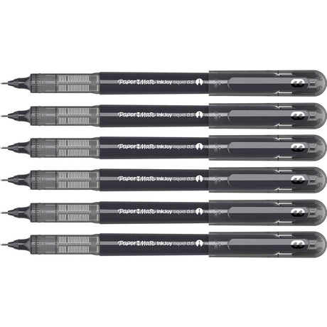 Paper Mate Needle Point Pens .5MM Black Ink - Inkjoy Liquid Pack of 6
