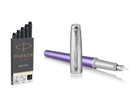 Parker Urban Fountain Pen Premium Violet with 5 Black Ink Cartridges, Medium