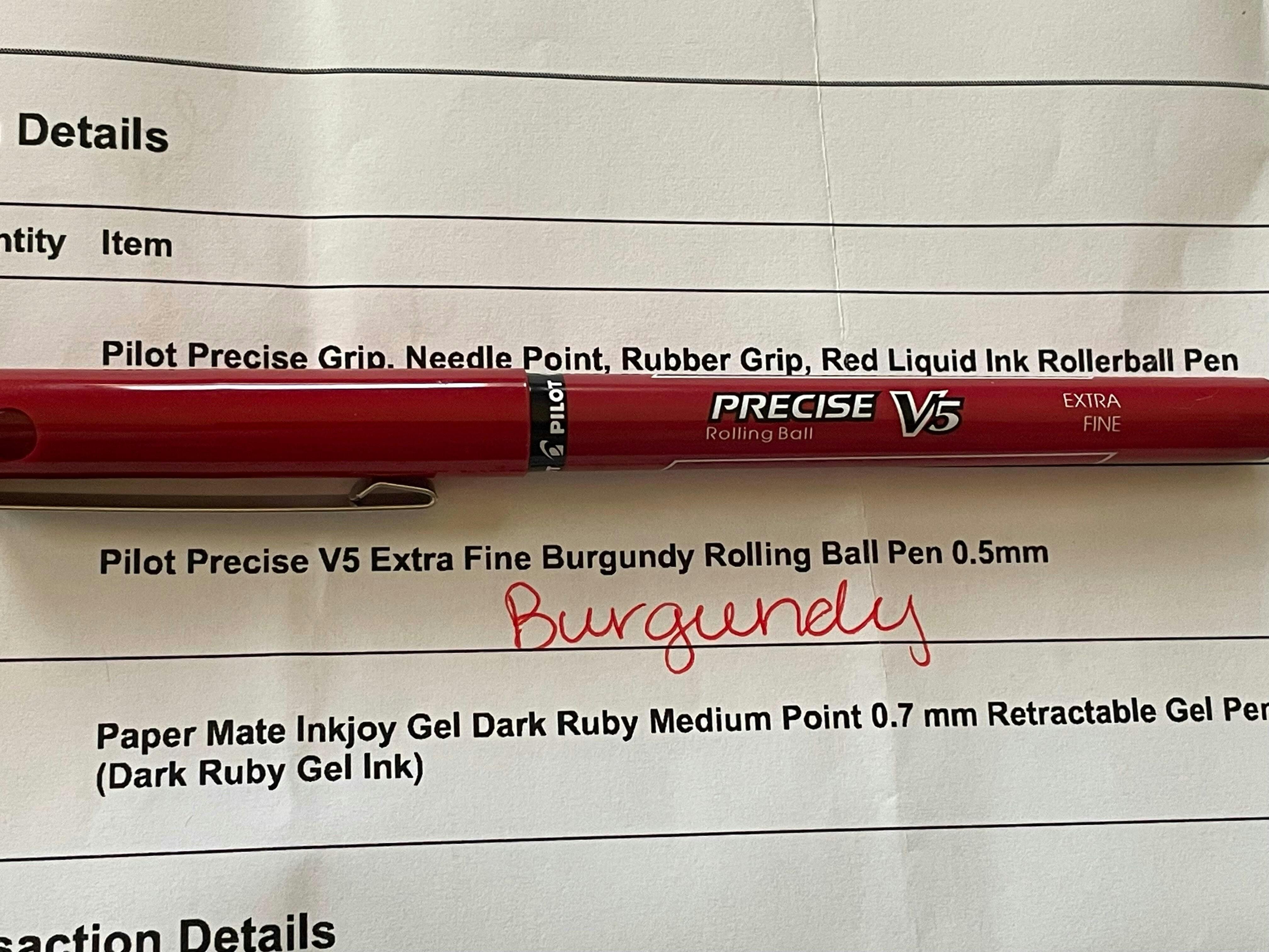 Pilot Precise V5 Extra Fine Burgundy Rolling Ball Pen 0.5mm is backordered and will ship as soon as it is back in stock.