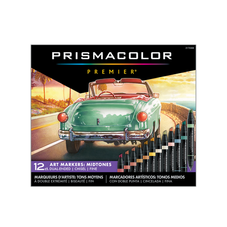 Prismacolor Premier Midtone art Markers Set of 12 Dual Ended Chisel and Fine Tips 2173308