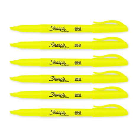 Sharpie Pocket Highlighter Narrow Chisel Tip Fluorescent Yellow Smear Guard 6 Count