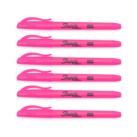 Sharpie Pink Pocket Highlighter Narrow Chisel Tip Smear Guard Pack of 6